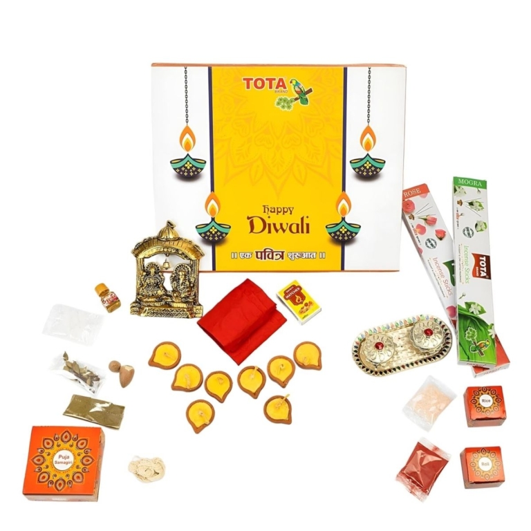 TOTA Diwali Puja Kit - 12 Puja Items with Lakshmi Ganesh Temple