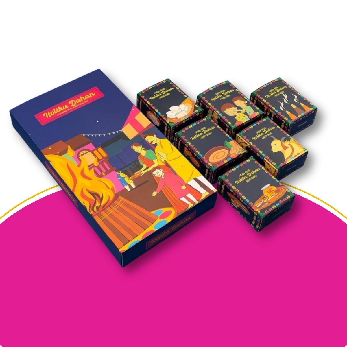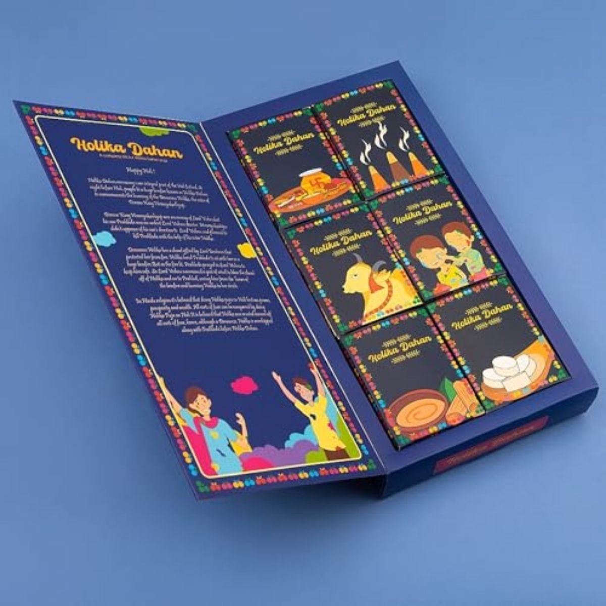 - Product: Holika Dahan Gift Pack; Contents in this pack: 1 Holi Thali, tesu Phool, Gulal Pouch, Cow Dung, Chandan Tika, Camphor Generic Name: Holi Kit, Gift Pack for Holi, Holi Color, Holi Gift pack, Fastival Holi Kit, Holi Gift Hamper Kit, Festival Color