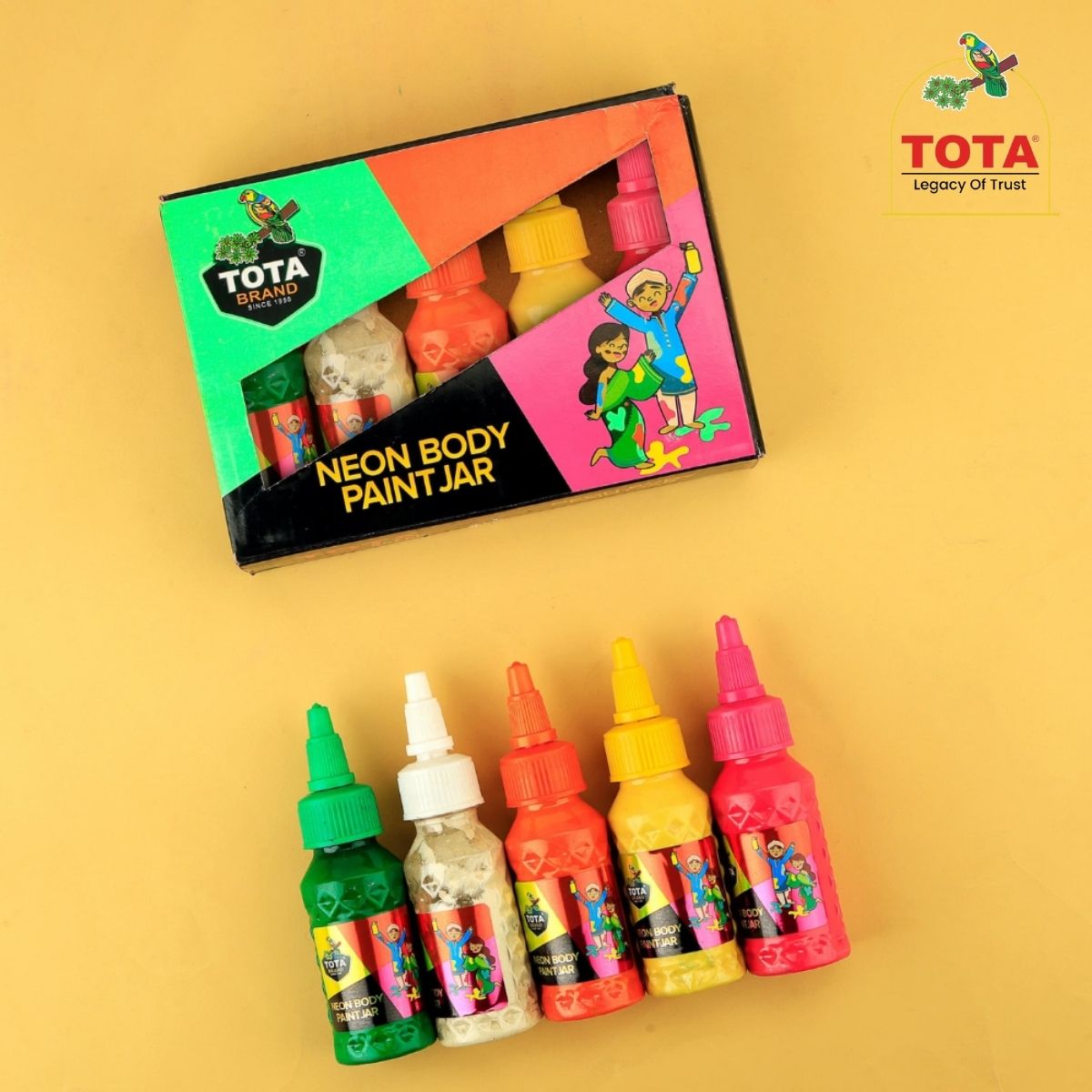 The Tota Non-Toxic Holi Body Color Jar is a vibrant and skin-friendly solution for celebrating Holi and attending festive events. Designed for safe use on the face and body, this Holi-special color provides rich, bright shades that enhance the joy of the festival. Made from non-toxic, skin-safe ingredients, it is suitable for all skin type