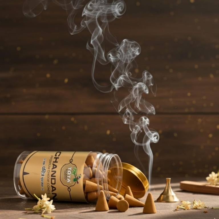 ₹15.00 – ₹80.00Price range: ₹15.00 through ₹80.00TOTA Premium Chandan DHOOP Cones | Natural Sandalwood Incense for Puja