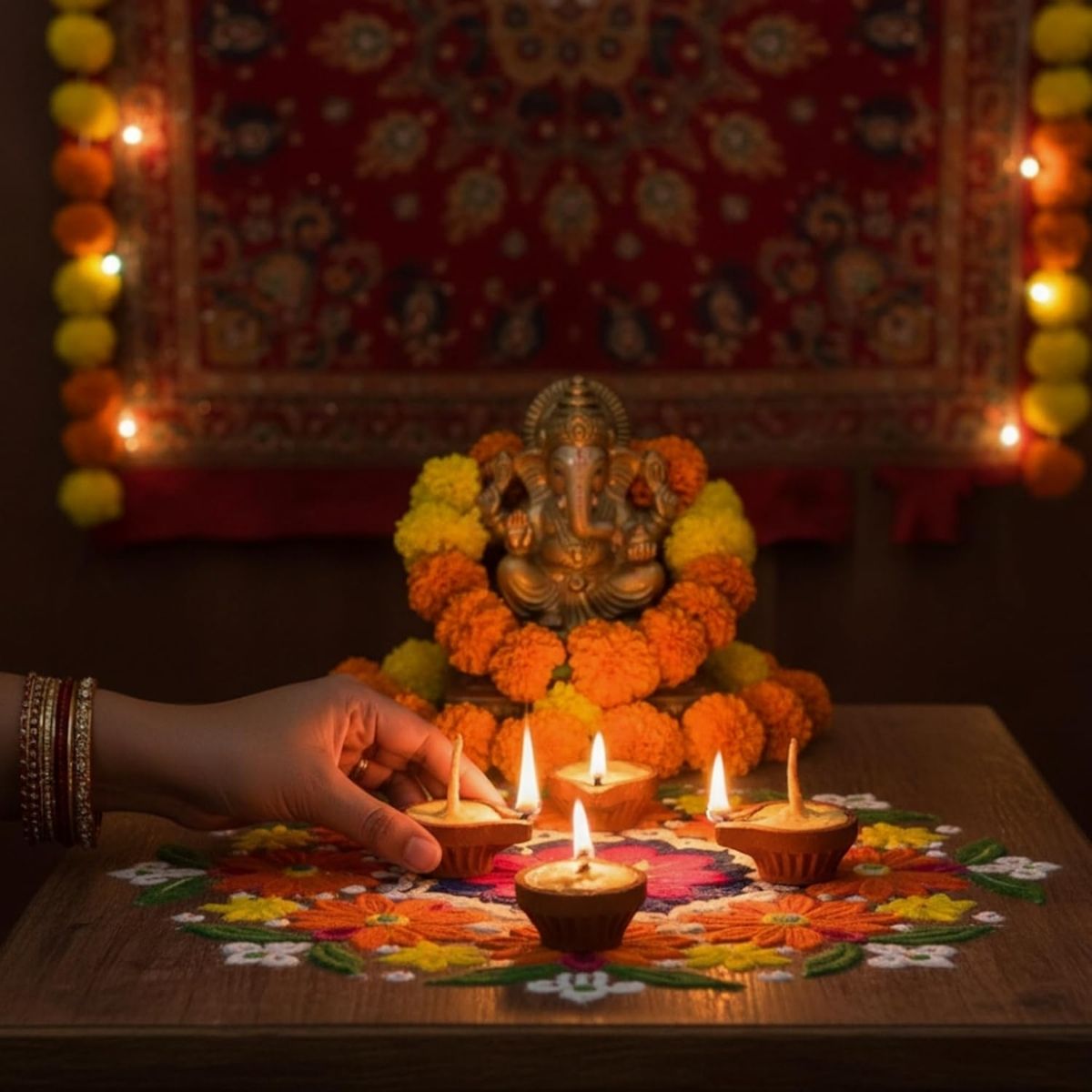 - HANDCRAFTED CLAY DEEPAK: Made from high-quality clay each Diya is hand-shaped by traditional artisans ensuring authenticity and a connection to India’s rich cultural heritage
