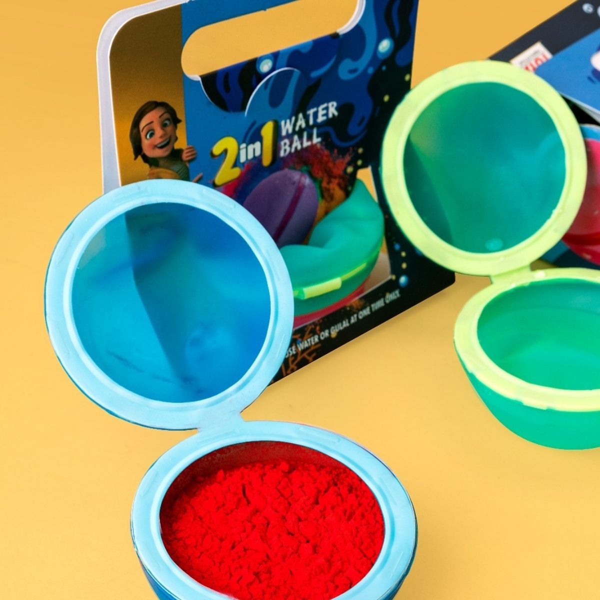 How to Use : The hollow space inside can be filled with water and gulal, and the two parts are closed securely with the help of magnets. When thrown at a person, it bursts and releases water and color. It is reusable and can be filled again for multiple uses.